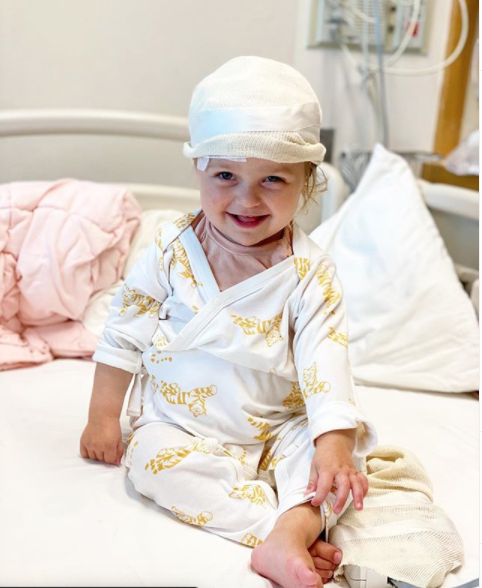 The Georgie is MRI-compatible, so there’s no need to change clothes (and all that entails) for scans, was thoughtfully designed to include plenty of room for and access to IVs and other dressings, and is breathable and comfortable in a way that feels more like “real” clothes than a hospital gown. One of the most significant aspects of the design of the Georgie is also that is promotes neurodevelopmental care – something that is so important to many little ones with complex condition who experience neurologic side effects from either their illness, operations they have had, or both. Georgia is followed closely by neurodevelopmental specialists, as are all babies and children who are transplant recipients, so Kate’s attention to this detail is both personal and intentional.